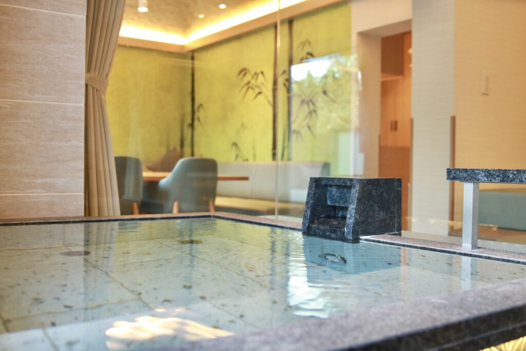 完全無人のホテルのため、チェックインからチェックアウトまでスタッフさんと会わずともすべて完結。全部屋に客室露天風呂(新姥子温泉)が付属しており、いつでも気が向いた時に温泉に浸かることができます。